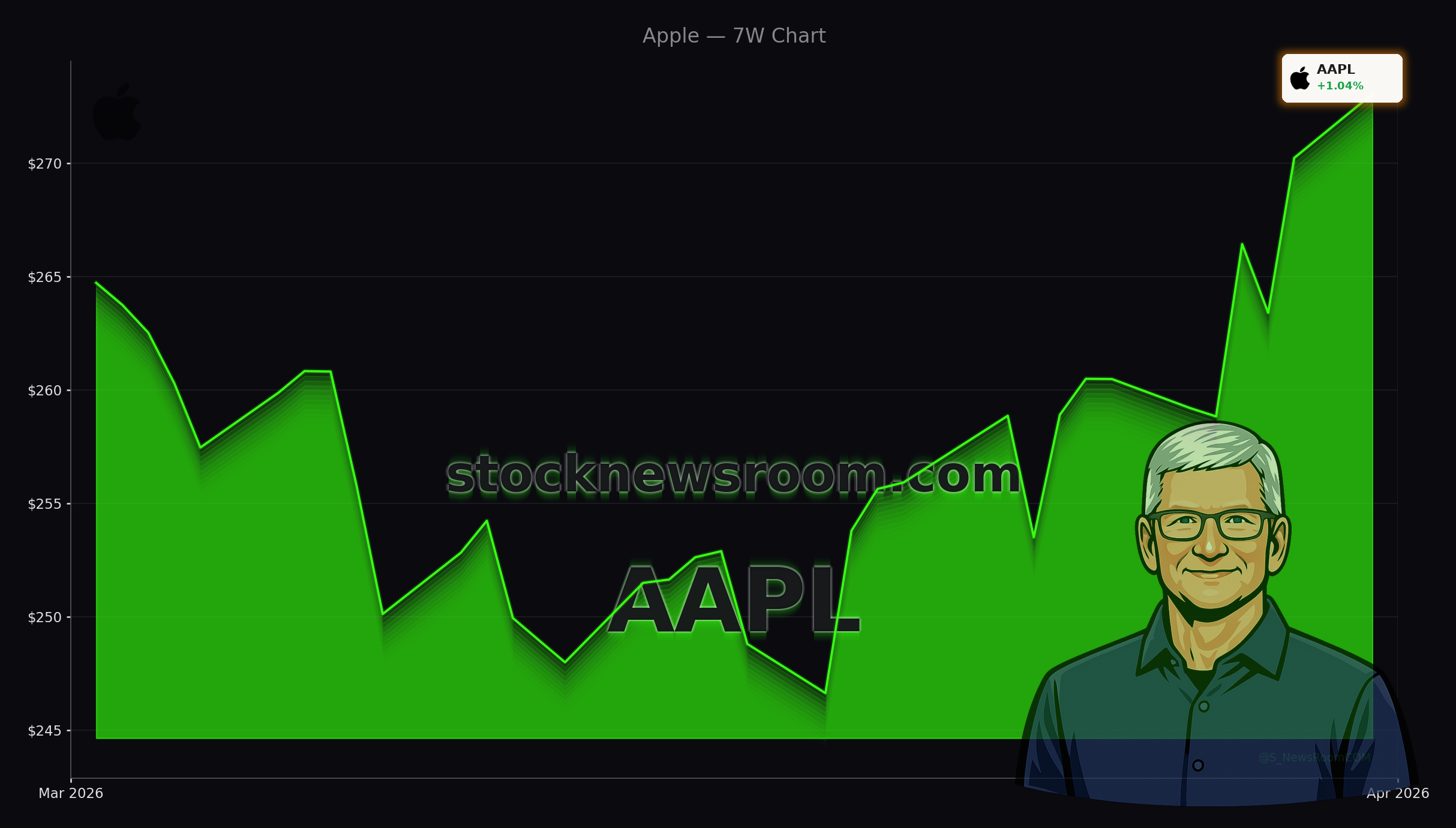 On Monday, Apple (AAPL) closed at $273.05 on NASDAQ, up 1.04% for the session, before slipping to about $271.50 in after-hours trading (‑0.57% as of late evening ET). The stock trades roughly 6% below its 52‑week high of $288.61 and well above the 52‑week low of $189.81, signaling that the Apple CEO Transition is not being treated as a shock event. Daily moves were modest compared with the broader NASDAQ, where profit‑taking in high‑multiple tech names continued.