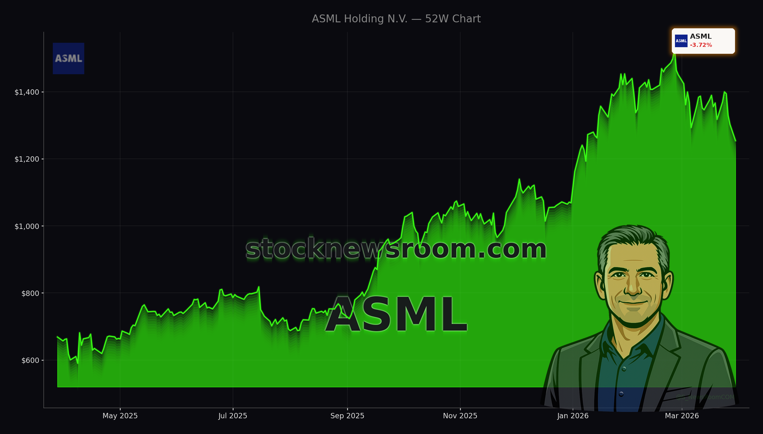 ASML shares fell about 3.7% on Monday to $1,253.96, extending a March correction of roughly 14% even as the broader AI theme continues to dominate Wall Street. The drop came alongside weakness in chipmakers and AI infrastructure stocks, with memory and equipment peers sliding sharply and weighing on the Nasdaq 100. Pre-market indications on Tuesday show ASML up about 1.3%, hinting at tentative dip-buying after the latest sell-off.