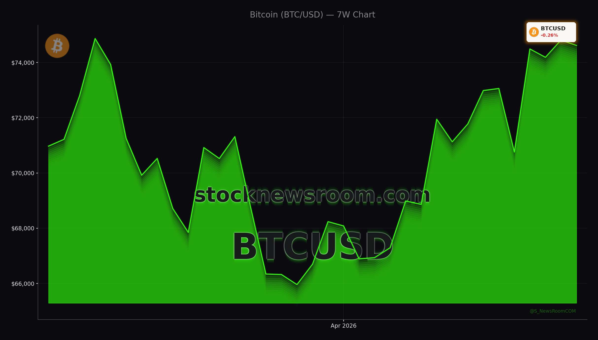 Bitcoin (BTC-USD) is changing hands near $74,478, modestly higher on the day and slightly below Wednesday’s intraday peak above $75,000. On the short-term chart, the coin is trading above $74,000 and its 100-hour simple moving average, signaling that the recent pullback from last week’s high around $76,088 remains a correction within an ongoing uptrend rather than a full reversal.