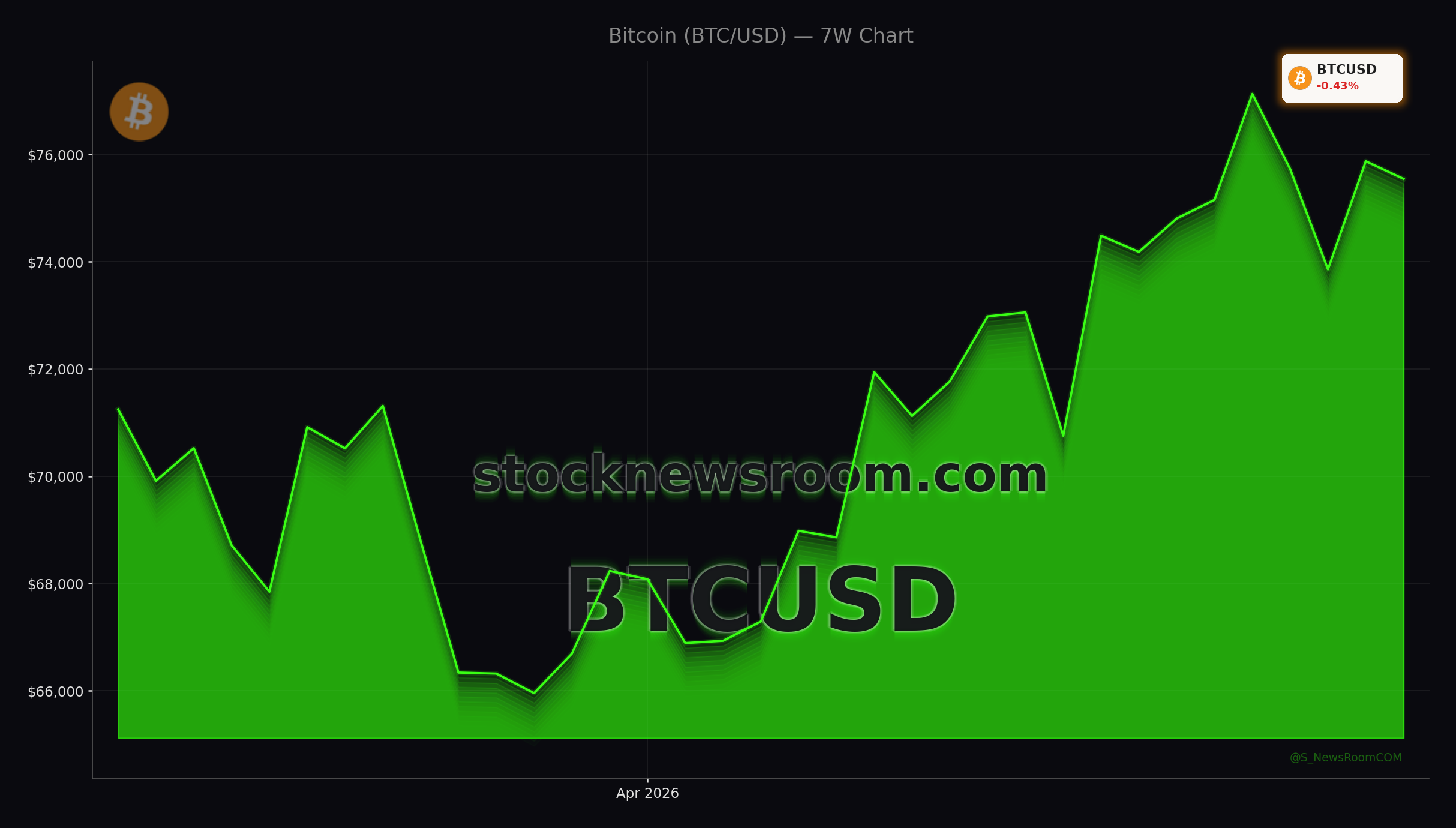 Bitcoin (BTC-USD) trades near $75,584, down about 1.15% from the previous close of $75,886, after a sharp rebound of roughly 17% off its March 20 low. Price action has been locked for more than two months in a wide range between roughly $60,000 and $75,000, echoing earlier consolidation phases that preceded major upside legs. Technically, several on-chain and momentum indicators point to the early stages of a new advance rather than a topping pattern.