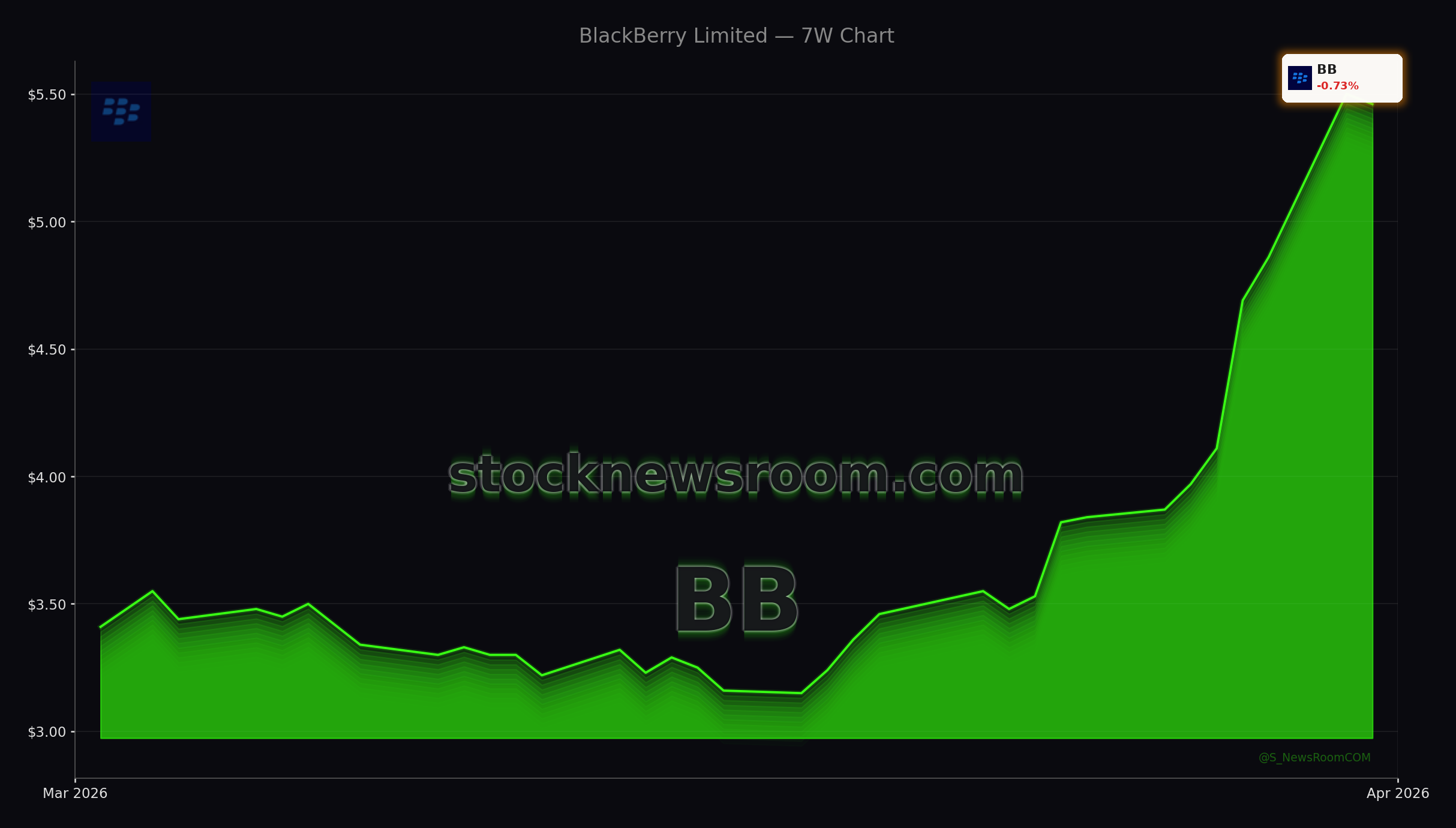 BlackBerry (BB) shares are consolidating near a fresh 52‑week high after a sharp move driven by the expanded BlackBerry Nvidia Partnership. In Monday’s U.S. session, the stock jumped more than 12% on the NYSE and recently traded around $5.49, roughly flat on the day but up significantly from its 52‑week low. With a new 52‑week high just above $5.50, BlackBerry has delivered a strong one‑year return and outperformed many legacy software peers, even if it still sits far below its meme‑stock era spikes.