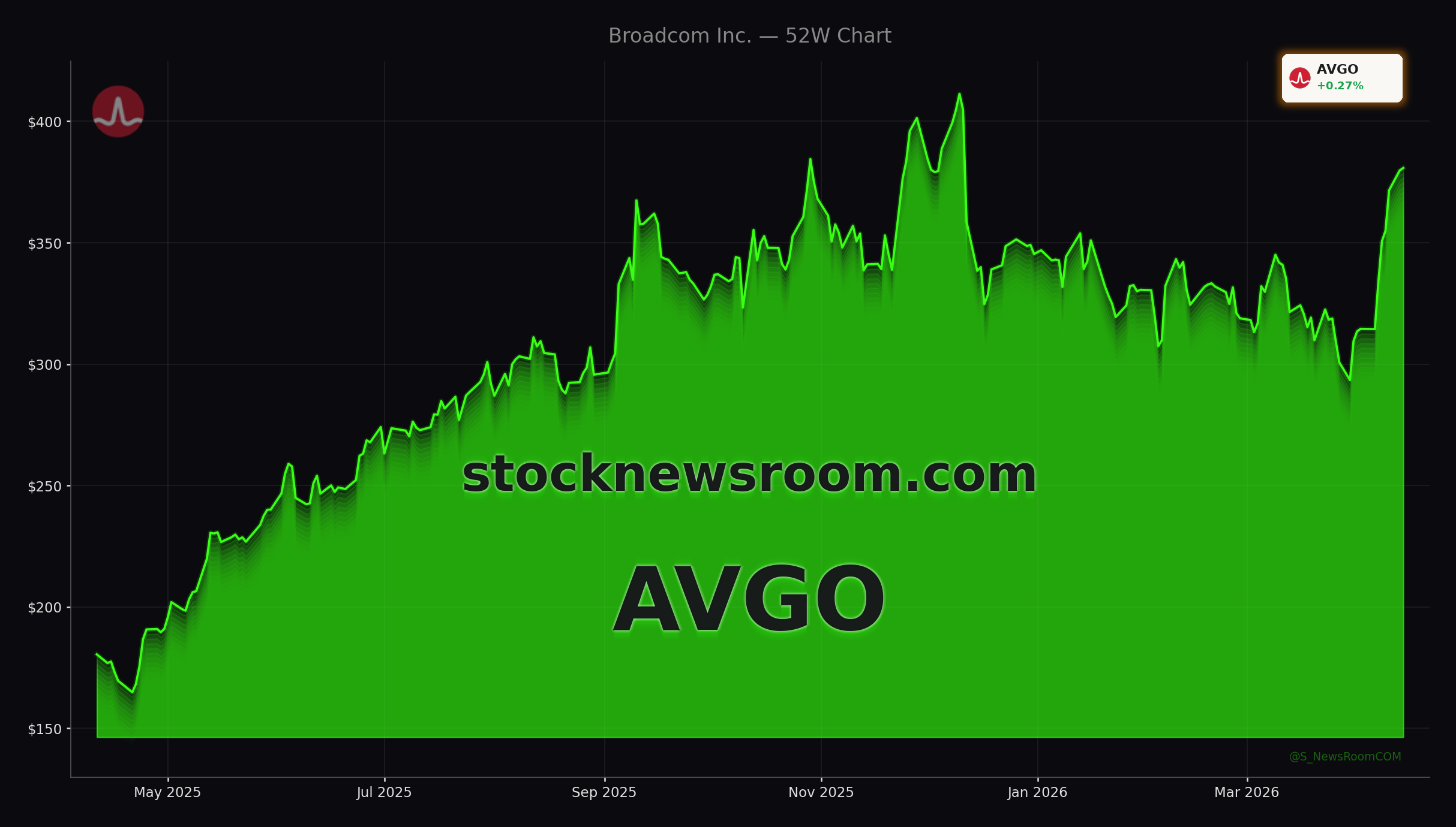 AVGO closed Tuesday’s regular session on NASDAQ at $380.78, up 0.27% on the day, before surging to about $394.32 in after-hours trading, a gain of roughly 3.6%. That move came even as the broader tech complex was already strong, with the Nasdaq Composite up 0.88% and the S&P 500 higher by 0.67% in regular trading. Broadcom shares are trading near the upper end of their 52‑week range, though still below the recent 52‑week high around the $414 area, so the reaction is powerful but not yet a new high.