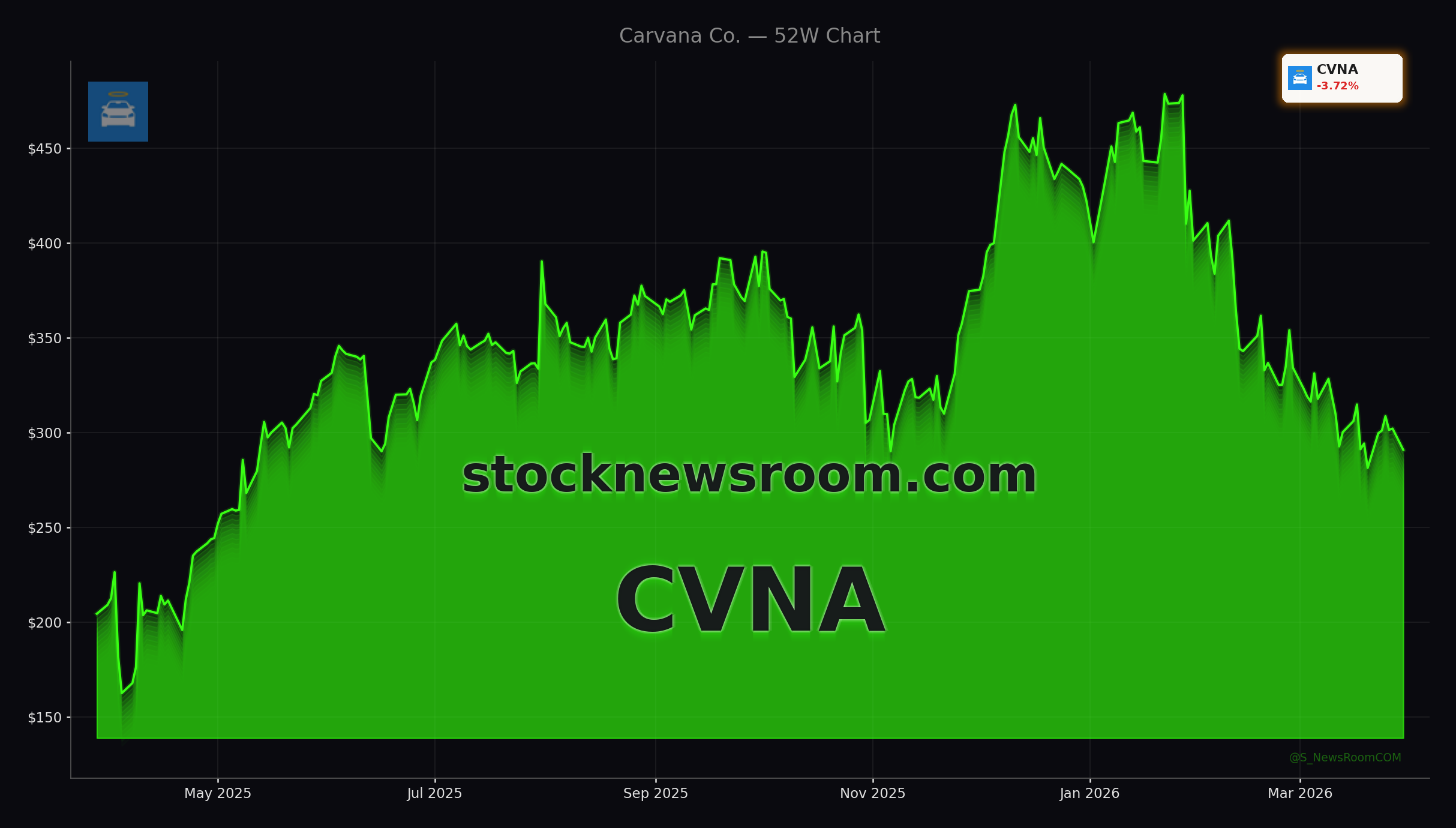Carvana Co. (CVNA) finished Monday’s session on the NYSE down about 3.7% at $290.80, retreating further from its 52-week high of $486.89. After hours, the stock slipped another fraction to around $290.20. That leaves Carvana down roughly a third year to date, even after reporting record 2025 revenue of $20.32 billion and 43% retail unit growth.