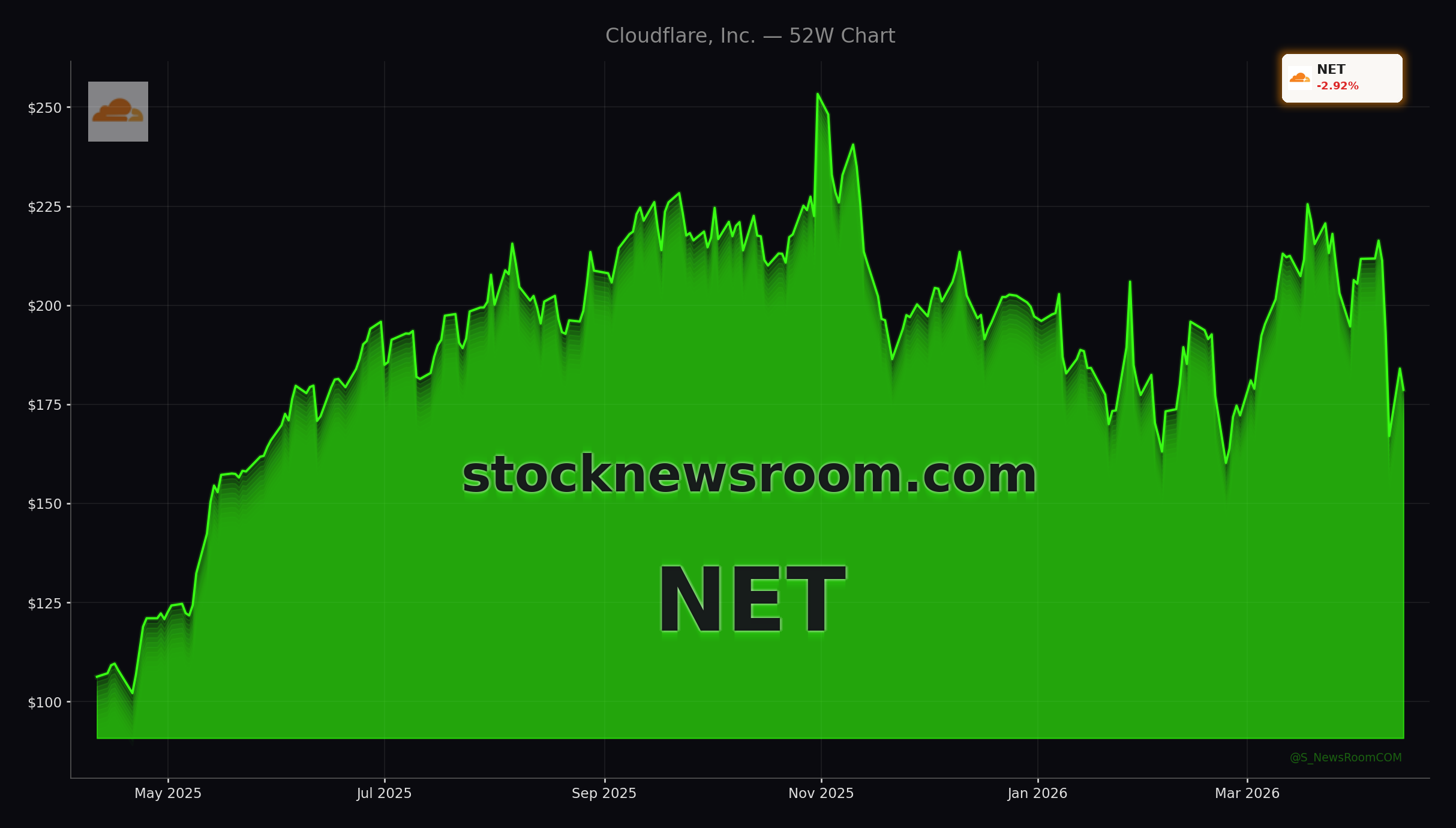 On a day dominated by new Cloudflare AI Security news, the stock moved the wrong way. NET closed at $178.65, down from a previous close of $184.97 (-2.92%), with only a marginal after-hours uptick to $178.68 as of late Tuesday. That weakness stands out against a technology sector that gained about 1% and sits near recent highs on the NASDAQ and S&P 500.