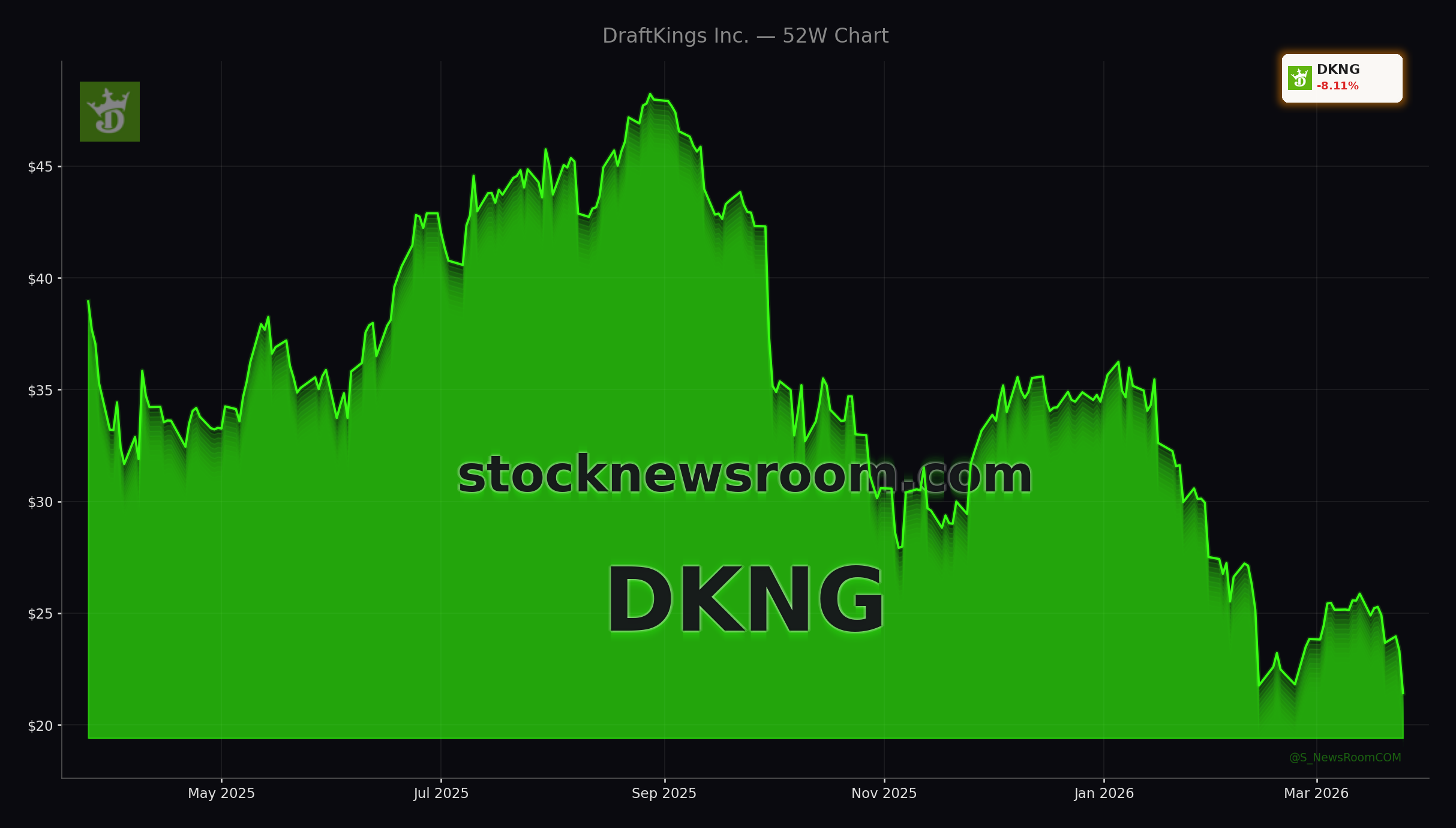 DraftKings closed Wednesday at $21.42, down from a previous close of $23.46, with only a modest after-hours bounce to $21.46 as of 8:00 p.m. ET. The move compounds what was already a painful stretch: DKNG is down more than 30% year-to-date and over 40% over the past 12 months, badly underperforming the S&P 500 and broader consumer discretionary peers. While many growth names tied to the NASDAQ have stabilized in recent weeks, DraftKings continues to trade under pressure as regulatory headlines overpower otherwise strong operating results.