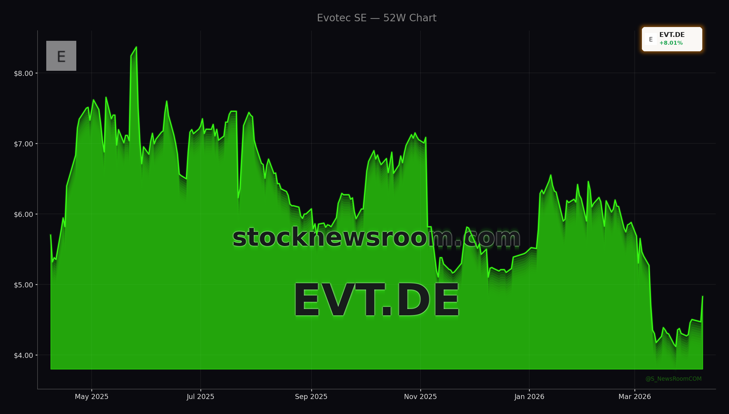 Evotec SE (EVT.DE) jumped nearly 8% to about $4.83 in European trading, extending a short‑term recovery from a base around EUR 4. The move roughly halves the stock’s year‑to‑date losses, though the share price remains deep in a multi‑year downtrend that has lasted more than four and a half years. For investors on Wall Street, the rally looks more like a relief bounce than a clear change in fundamentals, as the valuation is still driven by expectations of a distant profit inflection rather than current earnings power.