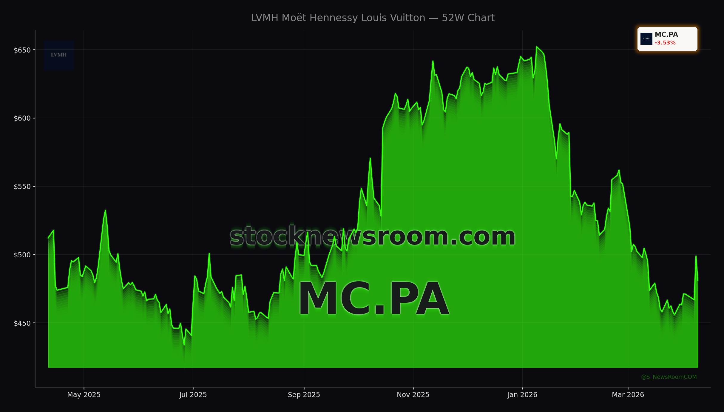 In summary, today’s LVMH Luxury Analysis highlights mounting tension between the company’s powerful brand portfolio and its exposure to the more cyclical soft-luxury segment. The stock’s 4% slide underscores that investors are recalibrating expectations as JP Morgan and others flag the risk of a wealth-effect hit to leather-goods demand. For global and U.S.-based holders alike, the next key datapoints will be trading updates and relative performance within the luxury complex, which will show whether LVMH’s pullback is a buying opportunity or the start of a longer period of consolidation.