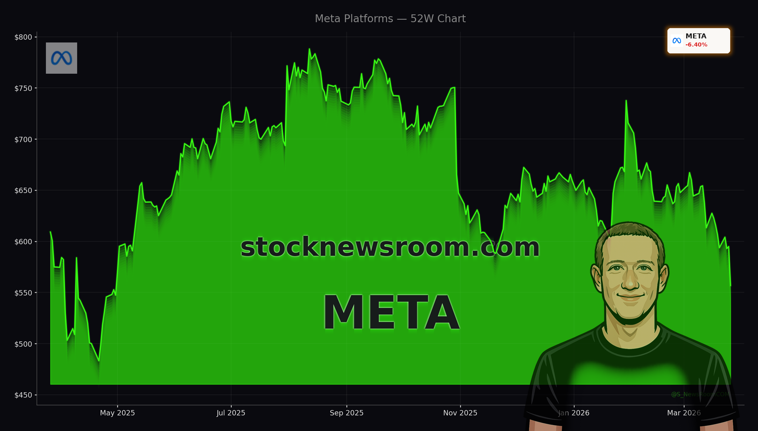 Meta stock is down nearly 29% from its all-time closing high of $790 in August 2025 and roughly 15% year-to-date, making it one of the weaker mega-cap tech names in Q1 2026. Thursday’s drop follows a pair of courtroom setbacks that sharpen the focus on the Meta Social Media Lawsuits and the company’s core engagement-based advertising model. The latest move puts the stock only about 1% above the April 2025 support area around $549, which technical traders are watching as a potential line in the sand.