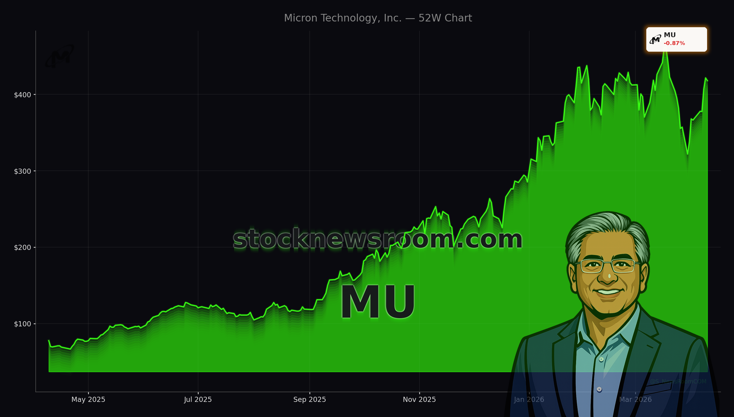 Micron Technology, Inc. has become one of the most polarizing names on the NASDAQ. The stock has climbed roughly 485% year over year, from the low‑$60s to above $400, and still trades about 10–20% below its 52‑week high near $471. Yet its forward P/E sits near 6x, a level usually reserved for deep‑cyclical names, not for companies guiding to record revenue and margins.