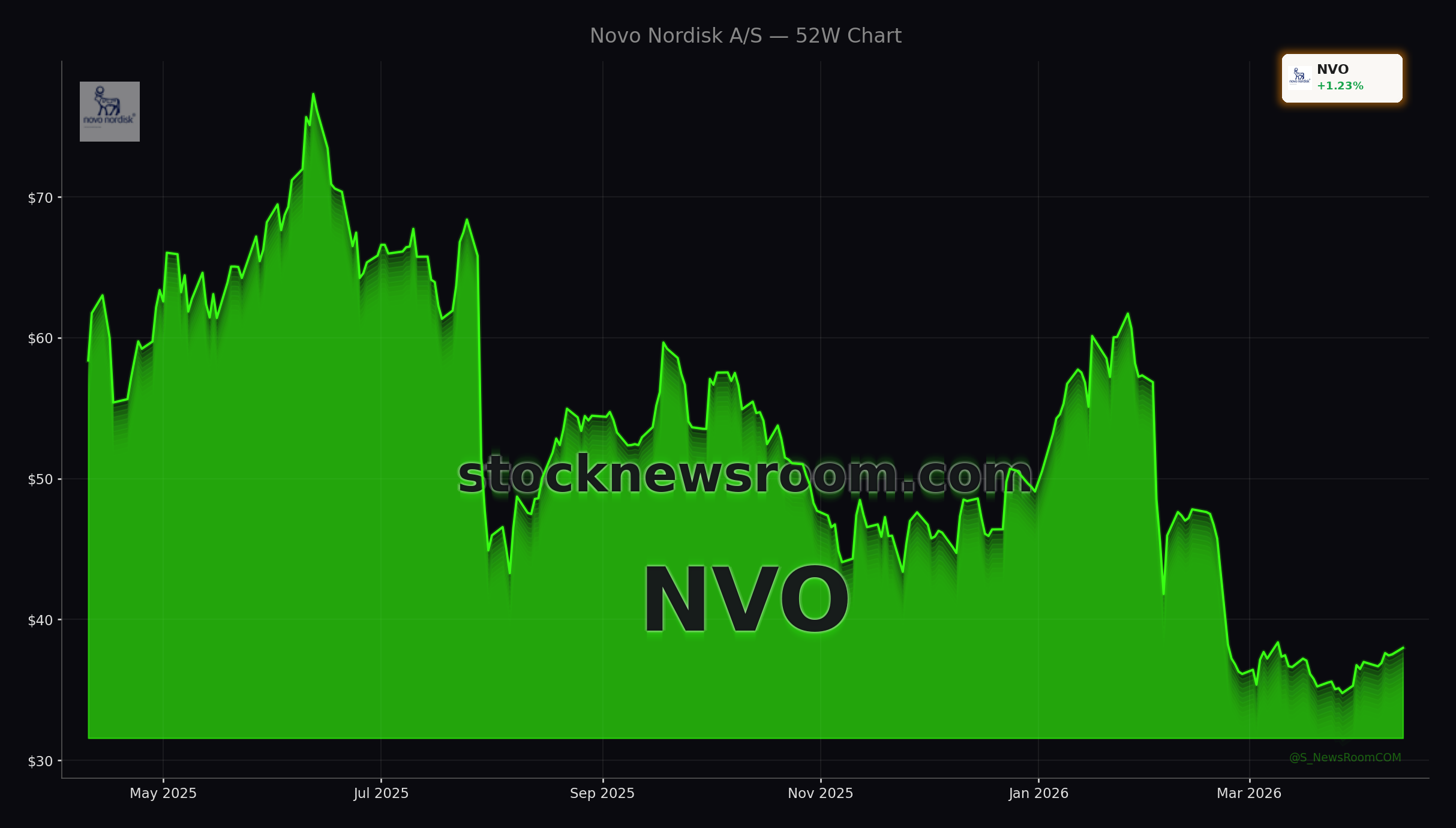 Novo Nordisk A/S (NVO) was last trading at $37.98, up 1.23% from Monday’s close of $37.94, with pre‑market quotes near $39.12 (up about 3.0%) on Tuesday. The announcement of the Novo Nordisk AI Partnership with OpenAI comes after a bruising 12‑month stretch in which the stock has dropped roughly 38%, even as demand for obesity drugs remains structurally strong. Options data recently showed a put/call ratio below its historical norm and rising implied volatility, hinting at growing speculative interest as traders reassess the downside that may already be priced in.