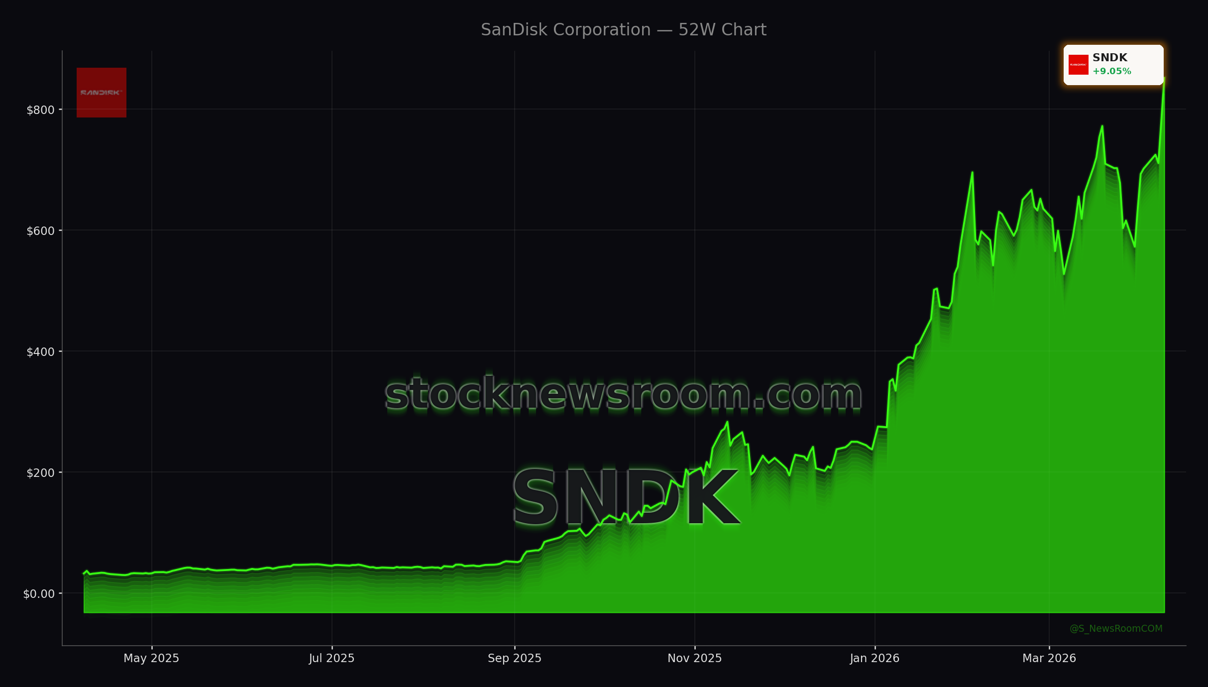SanDisk (Western Digital) closed Thursday at $851.57, up 9.05% on the day, and traded at $861.36 (+1.15%) after hours, extending an extraordinary run that has seen the stock soar roughly 2,300% year over year. The move comes as the broader AI trade on the NASDAQ remains centered on compute leaders like NVIDIA, but memory has quietly become a second pillar of the theme. For SanDisk, the core driver is its position as a primary supplier of enterprise SSDs and NAND flash storage to hyperscale AI data centers, where model training and inference workloads demand enormous, high‑performance storage capacity.