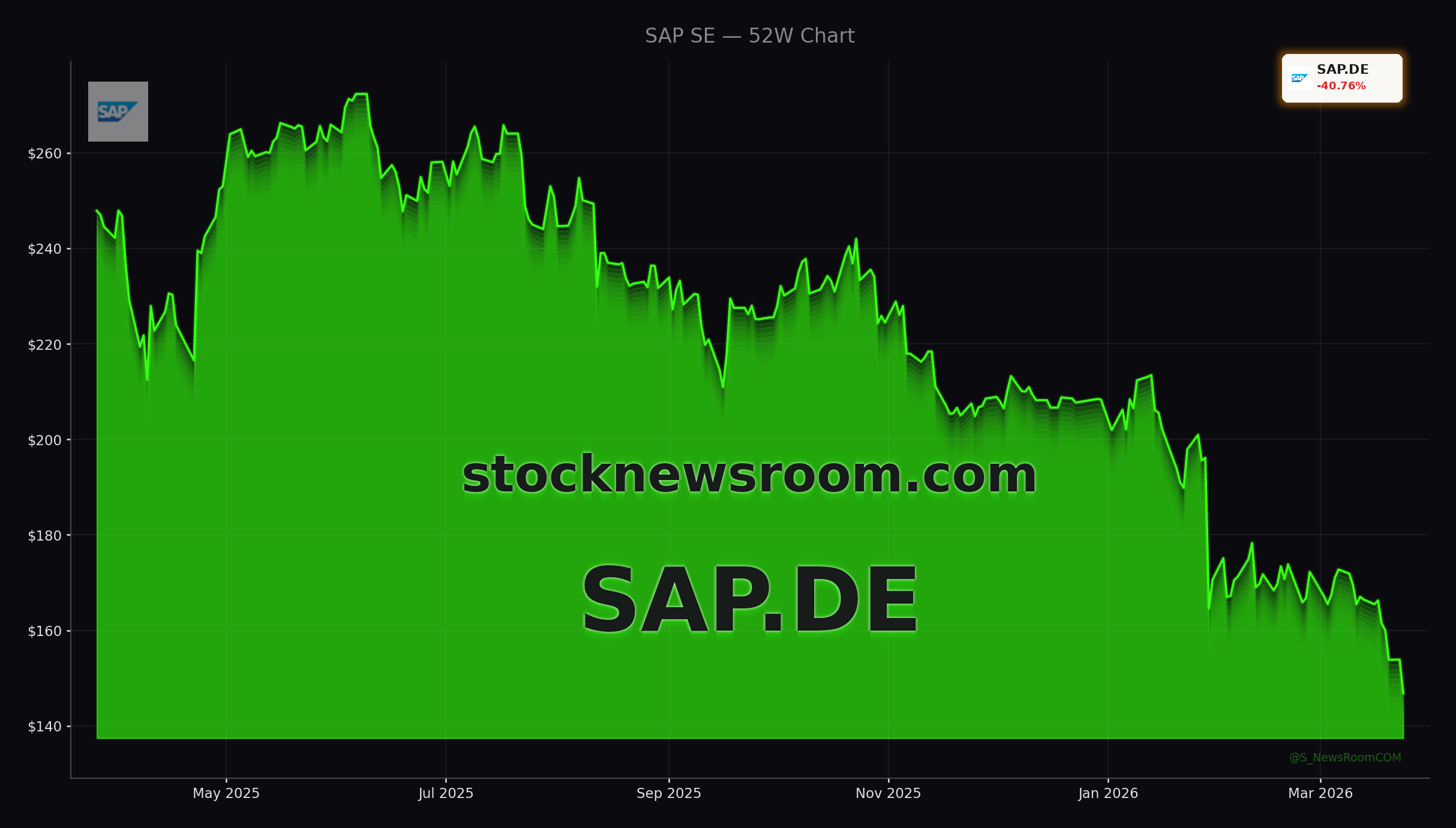 SAP remains one of Europe’s largest technology names, but its latest slide is putting pressure on portfolios from Frankfurt to Wall Street. The stock recently traded at around $146.96, down roughly 4.5% on the day and almost 40% below its prior all‑time high, making it one of the weaker large‑cap software names so far in 2026. The decline stands in contrast to U.S. peers like NVIDIA and Apple, which remain much closer to their 52‑week highs and continue to benefit from strong AI‑driven narratives.