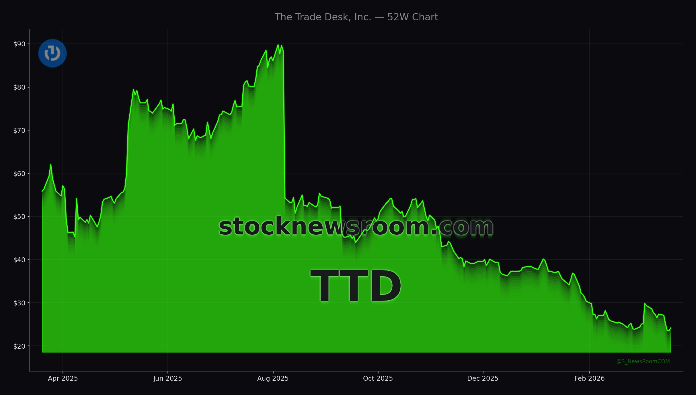 At Friday’s close, The Trade Desk, Inc. finished the session at $24.11, up 2.55% on the day, with after-hours trading nudging the stock to $24.20. That rebound barely dents a brutal slide from a 52-week high of $91.45, leaving the adtech leader down about 74% from its peak and back at multi-year lows. Against a backdrop where the NASDAQ and S&P 500 are much closer to their highs, the stock is trading as if its business model is in structural decline.